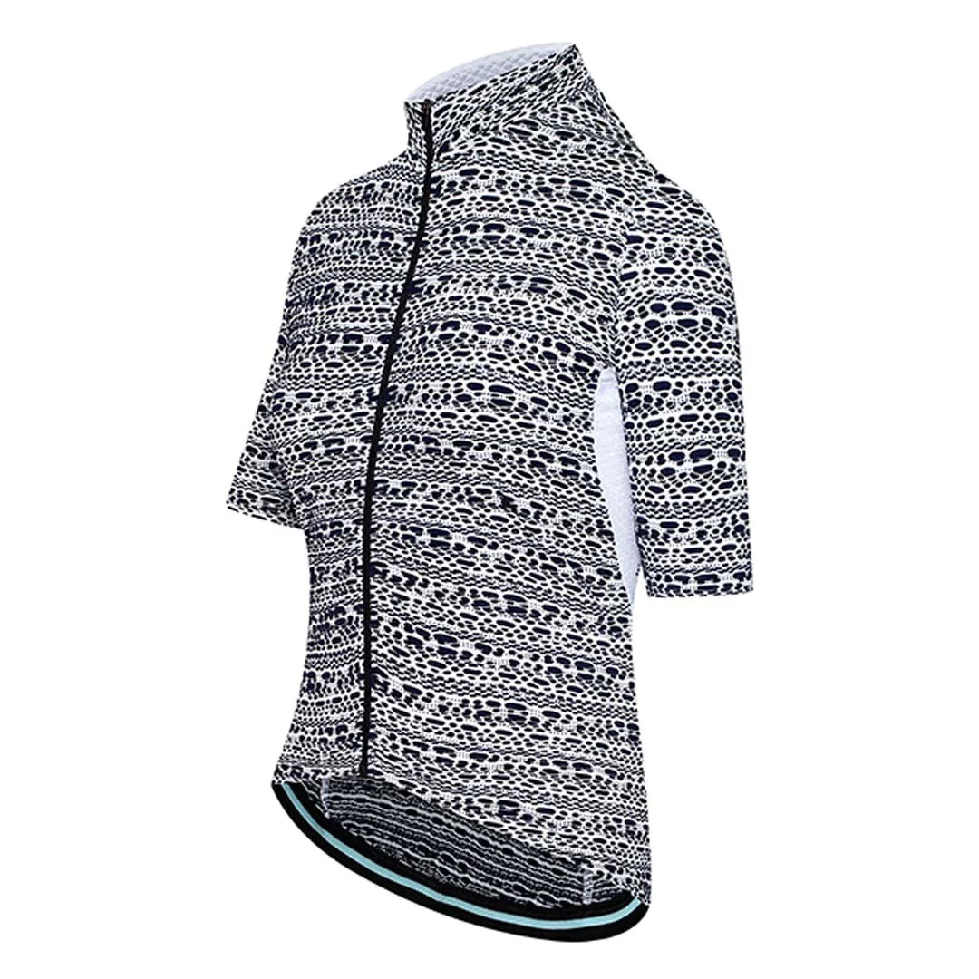 With signature Riviera-inspired styling, Francine is a versatile performance jersey suited to warmer weather rides, preferably on the French Riviera. The super-soft proprietary fabric is high wicking and fast drying to keep you cool and dry on hot days, while in cooler climes this mid-weight fabric provides additional protection against the wind.