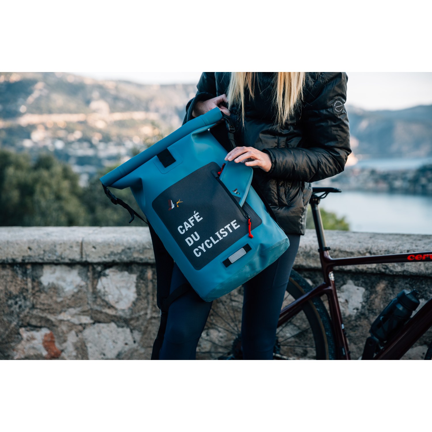 Other design details include aluminium D-rings, an aluminium tension lock, a grab handle, a light attachment point and reflective elements for better visibility in poor conditions. Featuring the Café du Cycliste Flying Fish, the backpack is ideal for roads less ridden and being out there, somewhere.