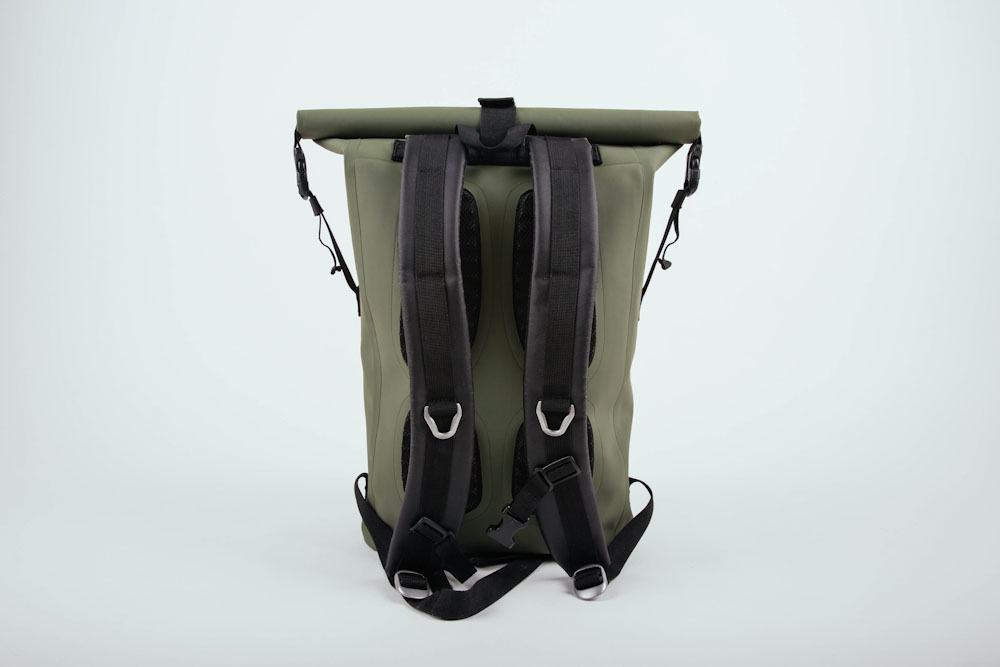 Constructed from a fully waterproof premium fabric, a TPU coated hypalon for maximum durability and protection, the rucksack has heat welded seams and a roll and buckle closure system. It’s built to keep things safe from rain, dust, dirt and worse, whether heading across rough country or just across town.