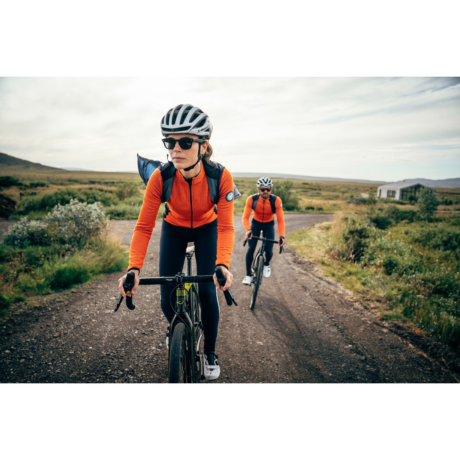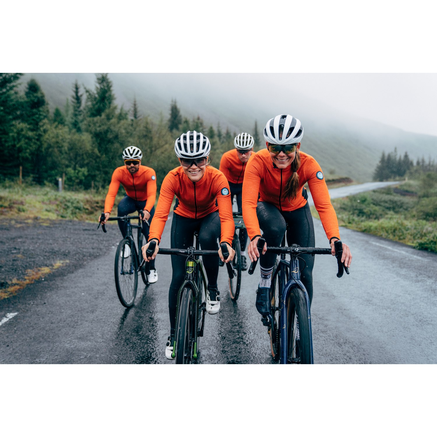 Conçu avec une coupe ajustée, Marguerite est fabriqué à partir d’un mélange de fibres très isolant dont la laine mérinos pour assurer une performance exceptionnelle par temps plus froid. La matière est tissée avec un effet de boucles texturé, une caractéristique qui apporte plus de chaleur tout en assurant que le maillot reste léger et entièrement respirant.