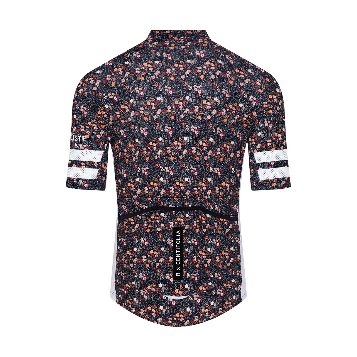 Le maillot possède des poches renforcées marquées d’un badge en référence à R. x Centifolia, la rose aux cent pétales, intensément parfumée et cultivée pour son parfum clair et doux.