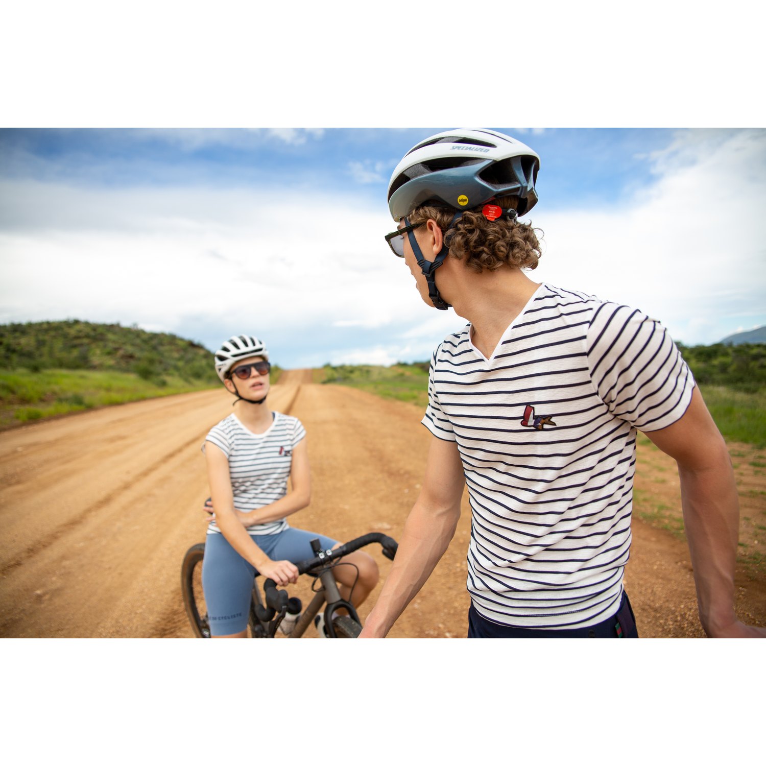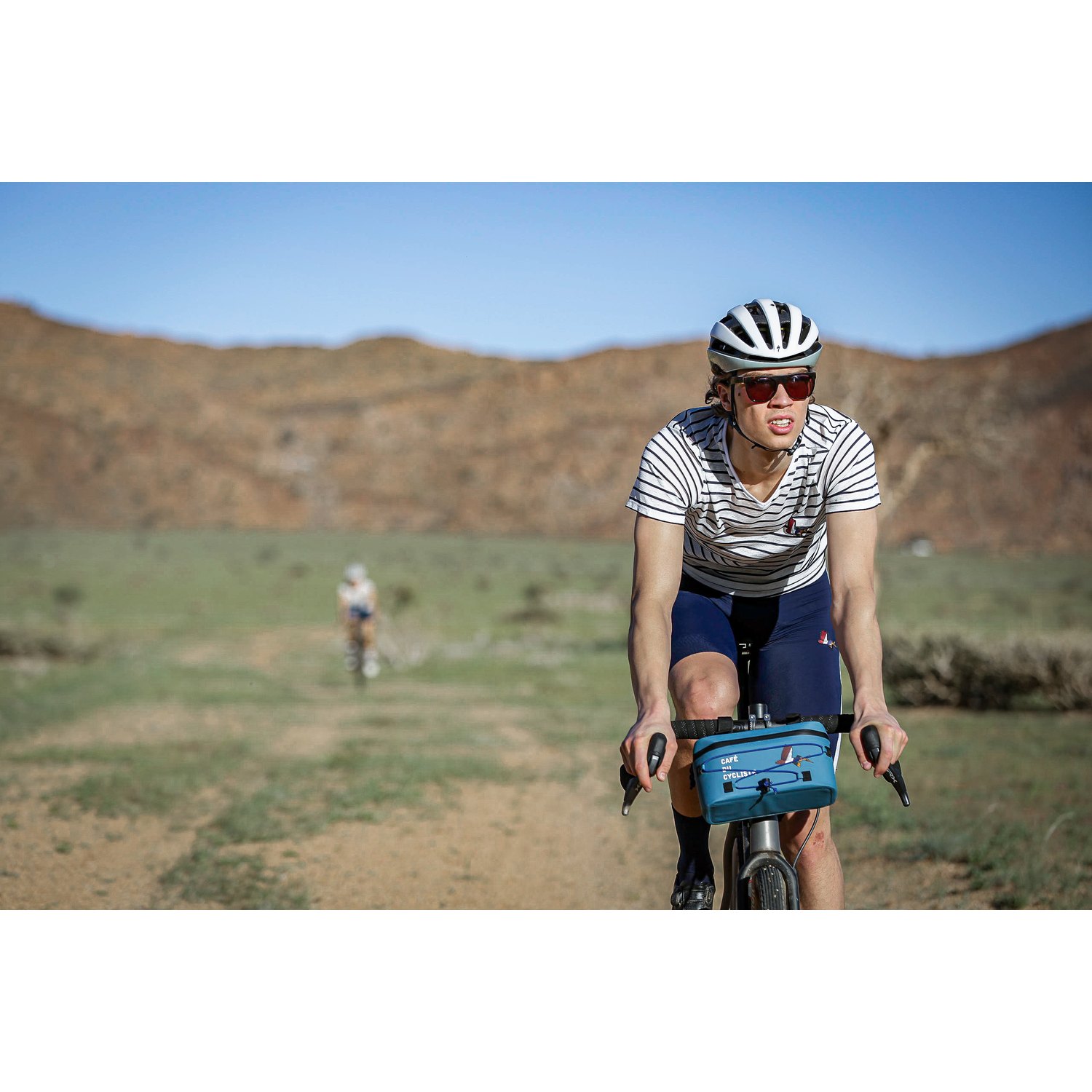Un maillot gravel aux rayures bretonnes conçu pour les routes moins fréquentées. Avec une construction légère et une couple plus ample, Pauline offre un confort optimal pour rouler sur les routes les plus difficiles par temps chaud.